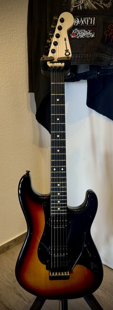 I bought this old Charvel Desolation together with my fiancé. It is my most colorful Guitar and it plays surprisingly well for its age and price.